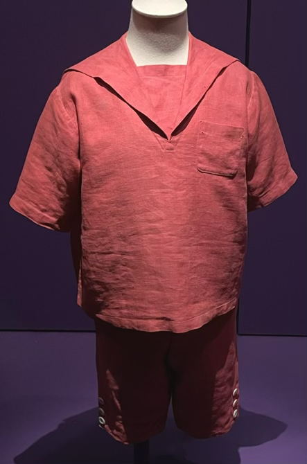 Keskimmäisen lapsen Colinin punainen polvihousupuku on valmistettu pellavakankaasta.