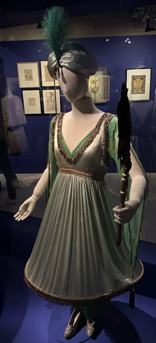 Mykkäelokuvien puvustus innosti suuresti Paul Poiret’ta 1920-luvulla. Olihan se uusi taidemuoto, ja filmien teossa käytettiin useita ajan merkittäviä taiteilijoita miljöiden luomisessa. Elokuva oli siis kiehtova tapa tehdä hybriditaidetta. Kuten vanhoista ja huonokuntoisista elokuvista yleensäkin, tähänkin näyttelyyn on saatu vain pieniä maistiaisia 1920-luvusta – jotain kuitenkin.