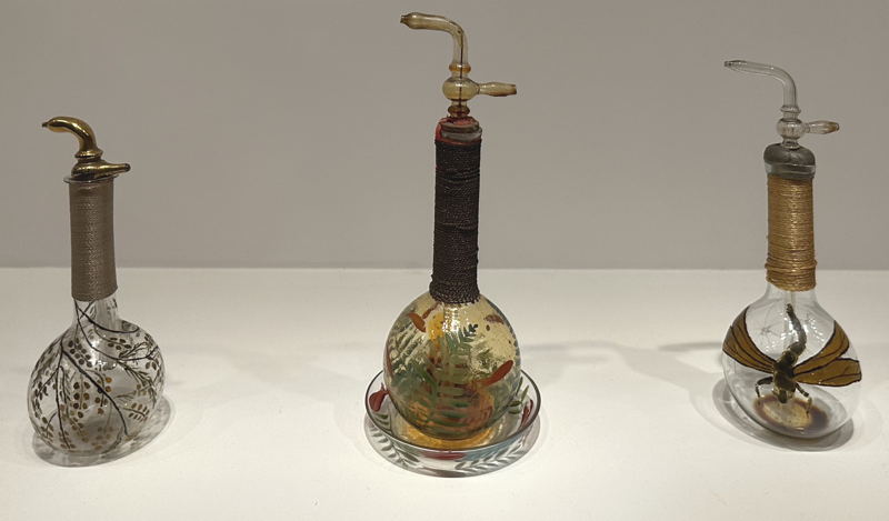 Näyttelyteksteissä painotetaan sitä, Paul Poiret oli ensimmäinen couturier, joka lanseerasi muotitalon oman hajuveden. Tämä tuntui alkuun oudolta, koska joidenkin tietojen mukaan Maison Worth oli ensimmäinen. Elämän ei pitäisi olla kilpajuoksua ensimmäisestä sijasta – muotitaloissa ehkä kuitenkin näin on. Joka tapauksessa historiallisten tietojen arvoitus kiinnostaa, ihan vähän. Ratkaisu on tässä: kummatkin lanseerasivat hajuveden, mutta Poiret joskus vuoden 1912 jälkeen (tarkkaa aikaa ei mainita) ja Worth vasta vuonna 1924.